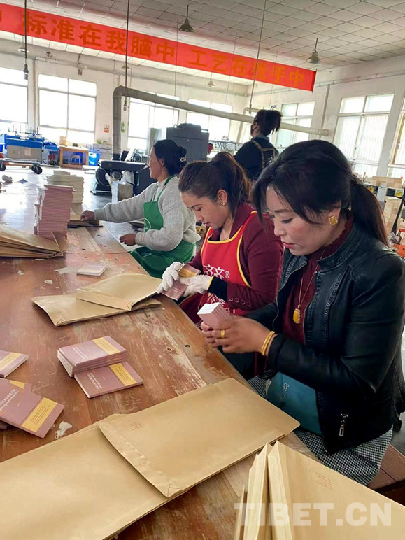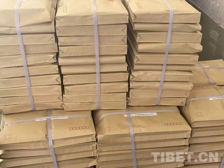 圖為工作人員正在打包發(fā)往基層的《漢藏對照術(shù)語規(guī)范明鏡》(2021)