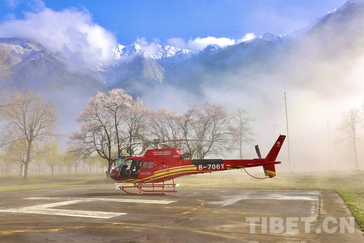 中國西藏網(wǎng)訊 云遮霧繞的早晨,青山如黛,桃花正盛。國網(wǎng)通航公司SG1151直升機機組的王磊卻沒時間欣賞這如畫的美景,一早便和同事們準備今天的航巡作業(yè)。