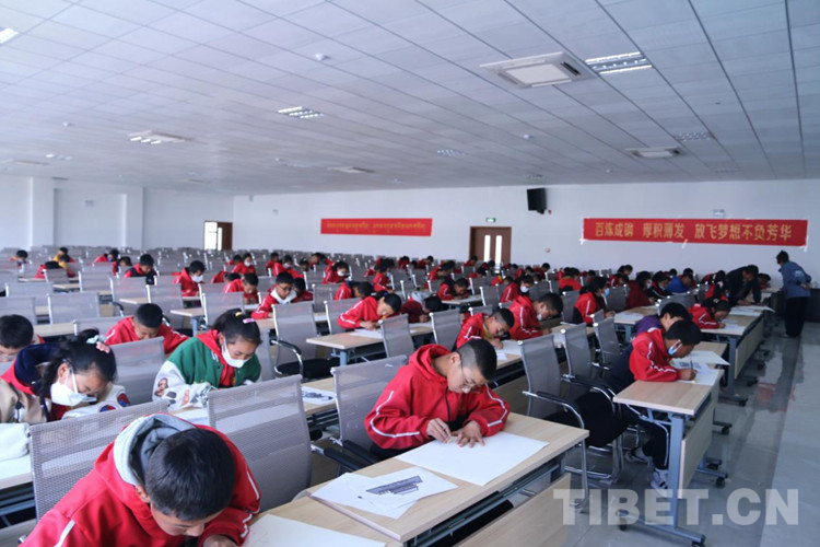 圖為參與活動(dòng)的乃東區(qū)中學(xué)學(xué)生在畫畫