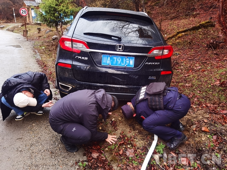 “我們來(lái)了,不用慌!”抵達(dá)現(xiàn)場(chǎng)后,移民管理警察向游客送上礦泉水,安撫游客情緒,隨后對(duì)現(xiàn)場(chǎng)進(jìn)行拍照取證,并使用警車(chē)幫助車(chē)輛脫困。經(jīng)過(guò)半個(gè)多小時(shí)的救援,車(chē)輛成功脫困,但由于受損嚴(yán)重,在警車(chē)護(hù)送下行駛2公里后無(wú)法繼續(xù)返回縣城。