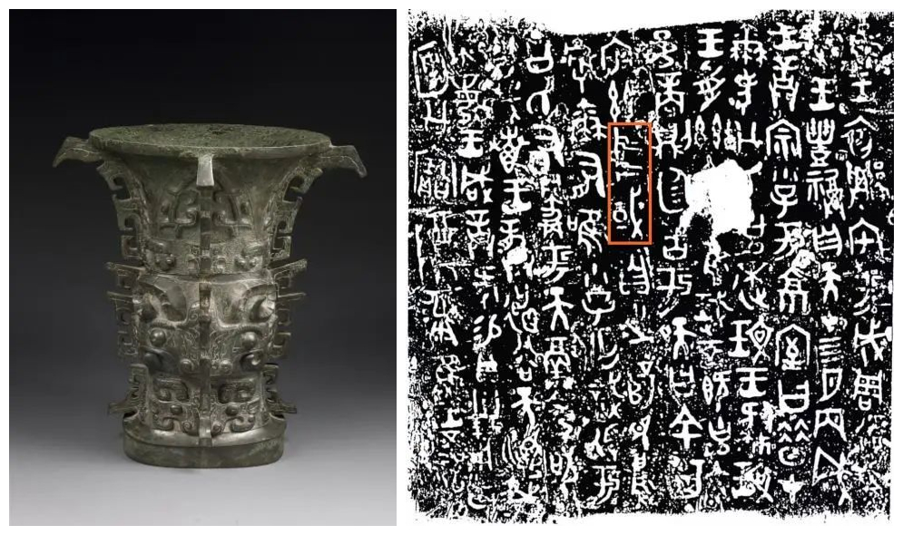 圖左為出土于陜西寶雞的西周早期青銅器、中國首批禁止出國(境)展覽文物、國家一級文物——何尊;圖右為何尊內(nèi)底鑄銘文“中國”一詞。這是“中國”一詞最早的出土見證。 圖片來源:寶雞青銅器博物院