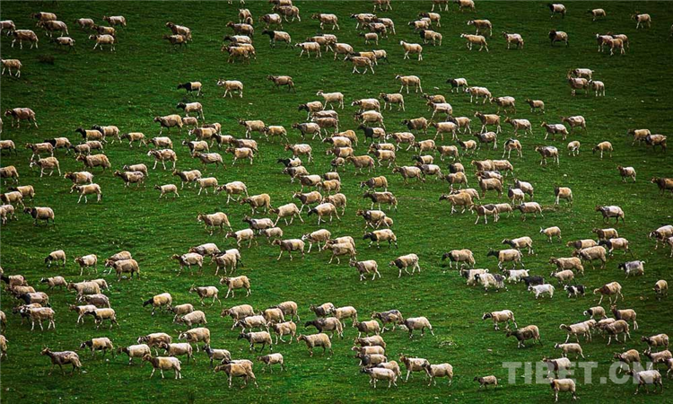 貢覺縣境內(nèi)山坡上的“阿旺綿羊”,其因體型較大、肉質(zhì)肥美、吃過不易上火而著名。攝影:趙耀