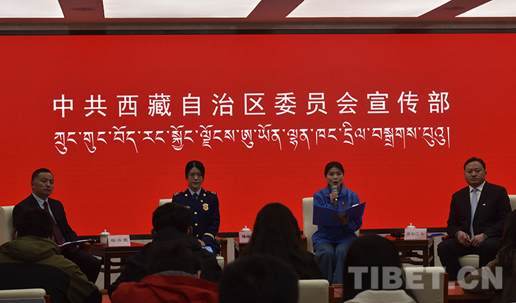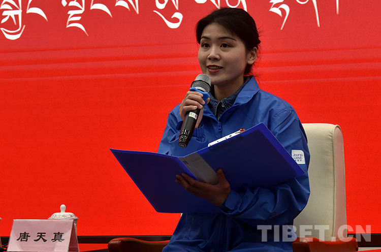 圖為拉薩市消防救援支隊(duì)布達(dá)拉宮消防救援站指導(dǎo)員傅梅天賜現(xiàn)場(chǎng)發(fā)言 攝影:王媛媛