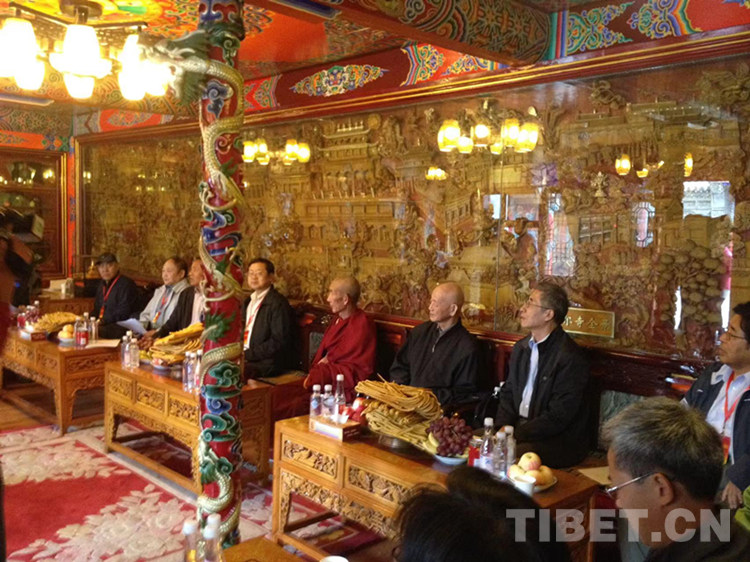 圖為2014年考察期間,專(zhuān)家學(xué)者們與塔爾寺寺管會(huì)領(lǐng)導(dǎo)交流