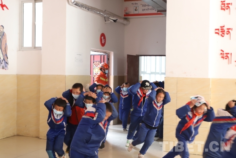 圖為左貢縣小學(xué)內(nèi)開展應(yīng)急避險(xiǎn)疏散演練