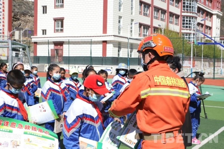圖為昌都市森林消防支隊(duì)左貢中隊(duì)向師生們普及防災(zāi)減災(zāi)知識(shí)和技能