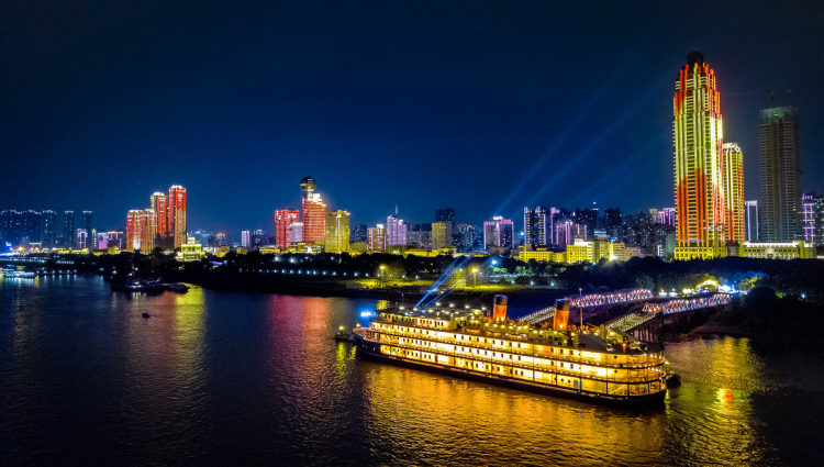 圖為知音號(hào)游船在武漢長(zhǎng)江段瑰麗的夜景中暢行 圖片來源:知音號(hào)網(wǎng)站