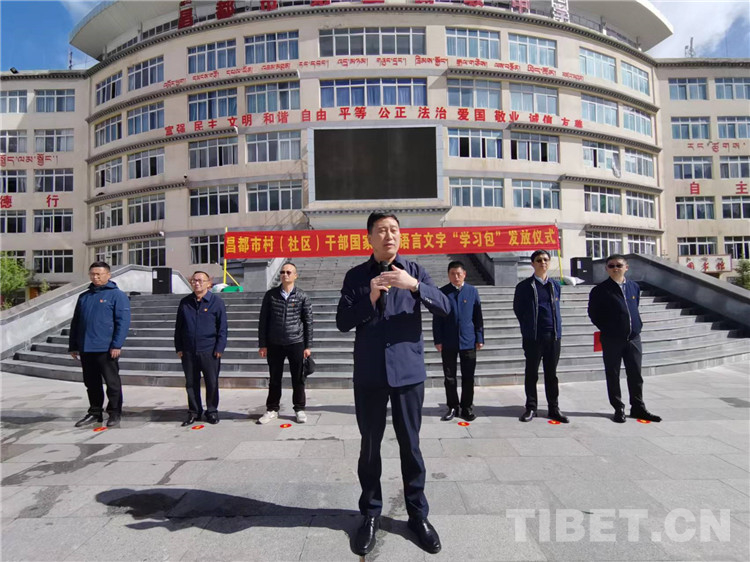 昌都市村(社區(qū))干部國(guó)家通用語(yǔ)言文字“學(xué)習(xí)包”發(fā)放儀式現(xiàn)場(chǎng)