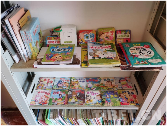 圖為重慶、浙江的愛心人士為阿日村的孩子們捐贈(zèng)的圖書