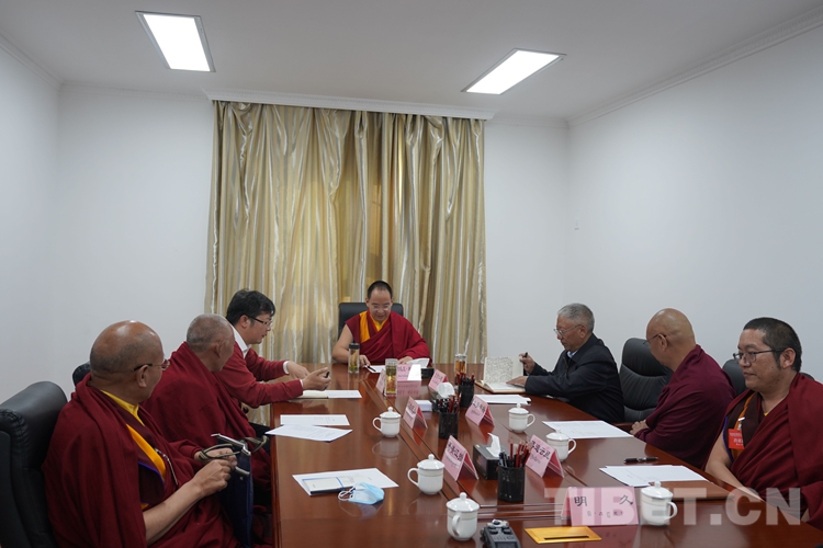 座談會上,班禪結(jié)合自身經(jīng)歷,暢談了在黨的民族宗教政策的光輝照耀下,西藏宗教信仰自由,正常宗教活動得到充分保障,各宗教各教派弘揚濟世利民、和諧平等、與時俱進的理念,精進學(xué)修、深研經(jīng)典,促進宗教與社會主義社會相適應(yīng)。藏傳佛教界各教派人士通過大量藏傳佛教健康發(fā)展的事例和深切感受,各抒己見、暢所欲言。全體與會人員結(jié)合各自領(lǐng)域?qū)嶋H,就藏傳佛教健康傳承、教義教規(guī)闡釋、依法管理宗教事務(wù)和宗教界開展“三個意識”教育等方面進行了廣泛深入的交流。