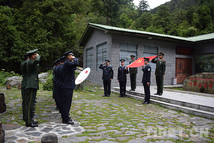 圖為錯(cuò)那邊境檢查站民警與錯(cuò)那縣武警中隊(duì)官兵共同在對(duì)印自衛(wèi)反擊戰(zhàn)前沿指揮所舊址重溫入黨誓詞 李啟書(shū) 攝