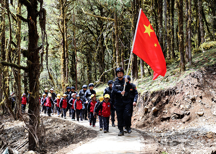 圖為玉麥邊境派出所組織單位民警、轄區(qū)黨員干部、群眾代表和全體學(xué)生共走巡邊路 張浩帥攝