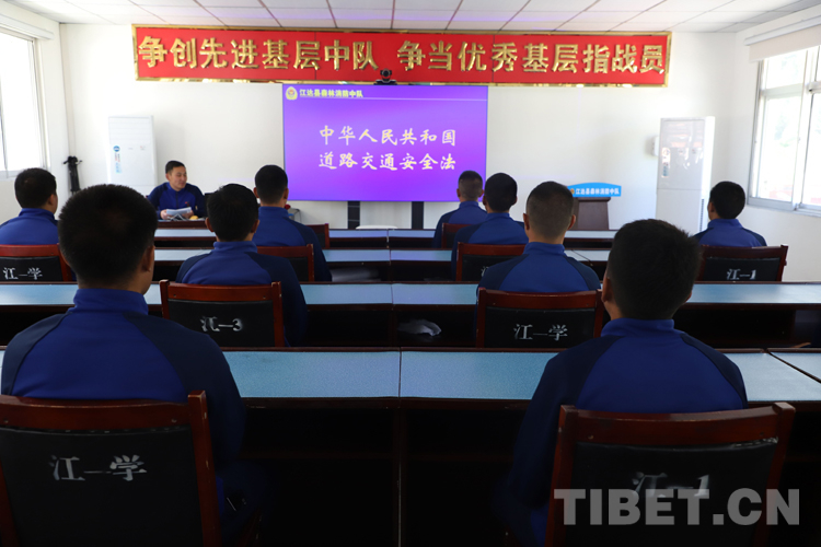 圖為昌都市森林消防支隊江達縣中隊指戰(zhàn)員學習《中華人民共和國道路交通安全法》