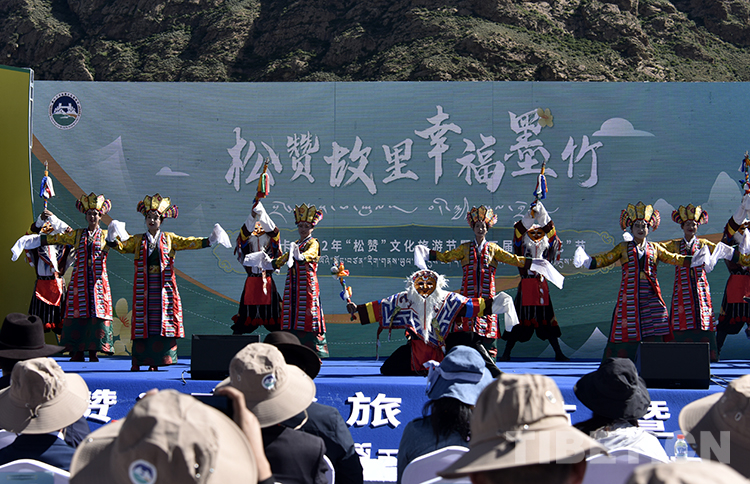 圖為墨竹工卡縣松贊文化旅游節(jié)暨第五屆油菜花節(jié)開幕式上的開場舞蹈《扎西雪巴》 攝影:王媛媛