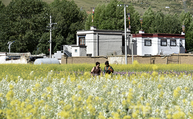 時下,驅(qū)車行駛在318國道墨竹工卡段,油菜花將大地“染成”金黃,連同綠色山巒和青稞,演繹著美麗的鄉(xiāng)村畫卷。