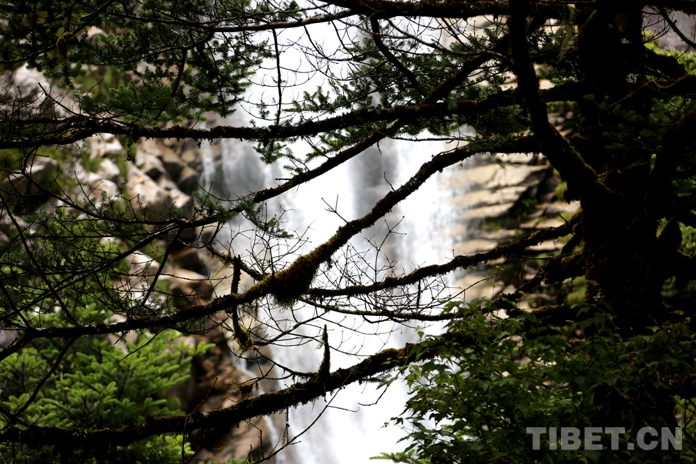 圖為從樹枝間隙中看親水疊瀑 攝影:王佳豪