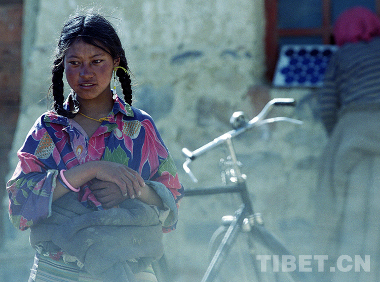 這是藏北尼瑪縣文部鄉(xiāng)過去使用牦牛奶來保護(hù)皮膚的藏族婦女(唐召明2001年攝)