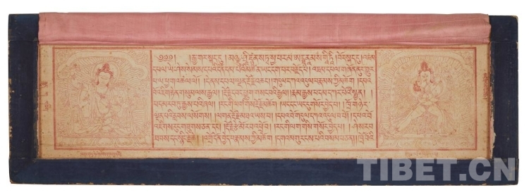 推崇藏傳佛教是清政府治理蒙藏地區(qū)的政治需要,同時也促進了各民族文化的交流與交融?!洞蟛亟?甘珠爾》該版藏經系清王室官刻本,纂輯、刻印都是由官方主持??淘?、裝幀頗為精良,版型較一般藏文經大,每夾扉畫均為手工繪制,筆觸細膩,設色鮮麗,大多出自藏族畫家手筆,為佛教文化研究不可缺的資料。康熙帝為此親撰《御制番藏經序》,序文稱,刊印本藏是為“廣崇大藏”。