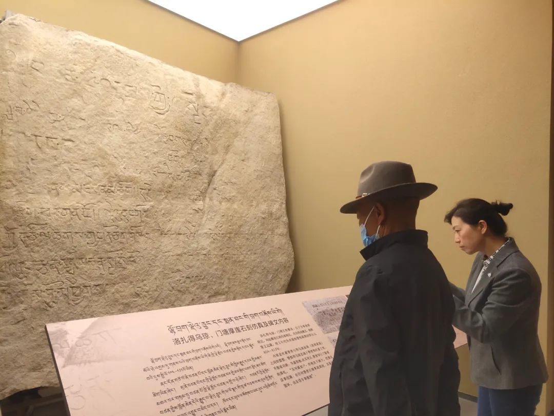 圖為參觀者在山南市博物館駐足了解洛扎得烏窮、門塘摩崖石刻內(nèi)容 圖片來源:西藏商報