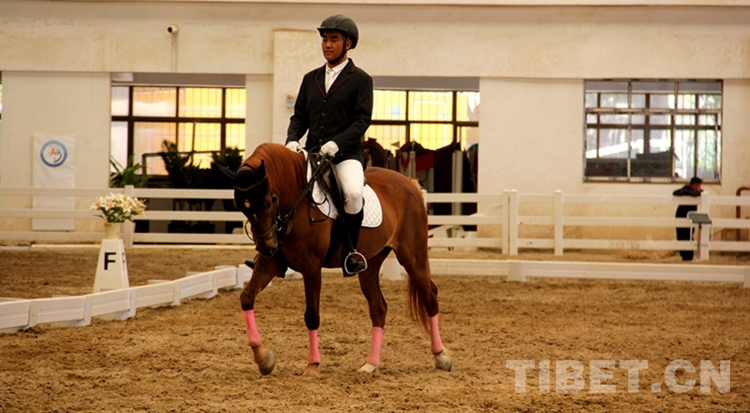 圖為在拉薩分賽場西藏自治區(qū)第十三屆運(yùn)動會舉行的馬術(shù)項(xiàng)目盛裝舞步比賽 攝影:德吉卓嘎