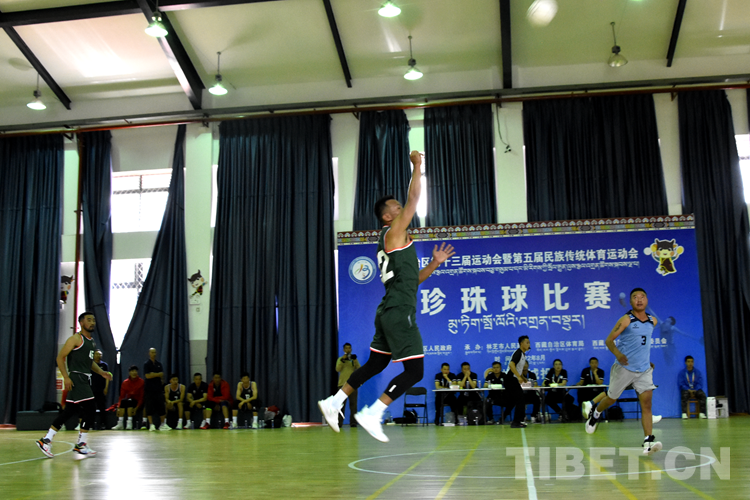 圖為在林芝主賽場進(jìn)行的西藏自治區(qū)第五屆民族傳統(tǒng)體育運(yùn)動會珍珠球比賽現(xiàn)場 攝影:拉姆
