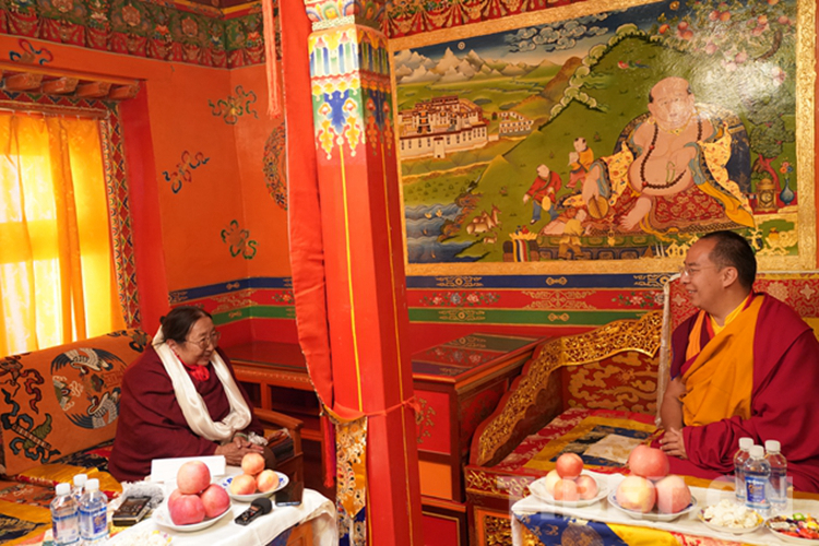 “多吉帕姆仁波切,您慢點!”桑頂?多吉帕姆德慶曲珍因年事已高,走路顯得有些吃力,班禪見狀細(xì)心叮囑道。