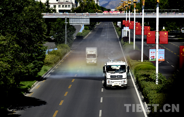 圖為8月12日,拉薩街道正開(kāi)展消殺工作 攝影:王媛媛