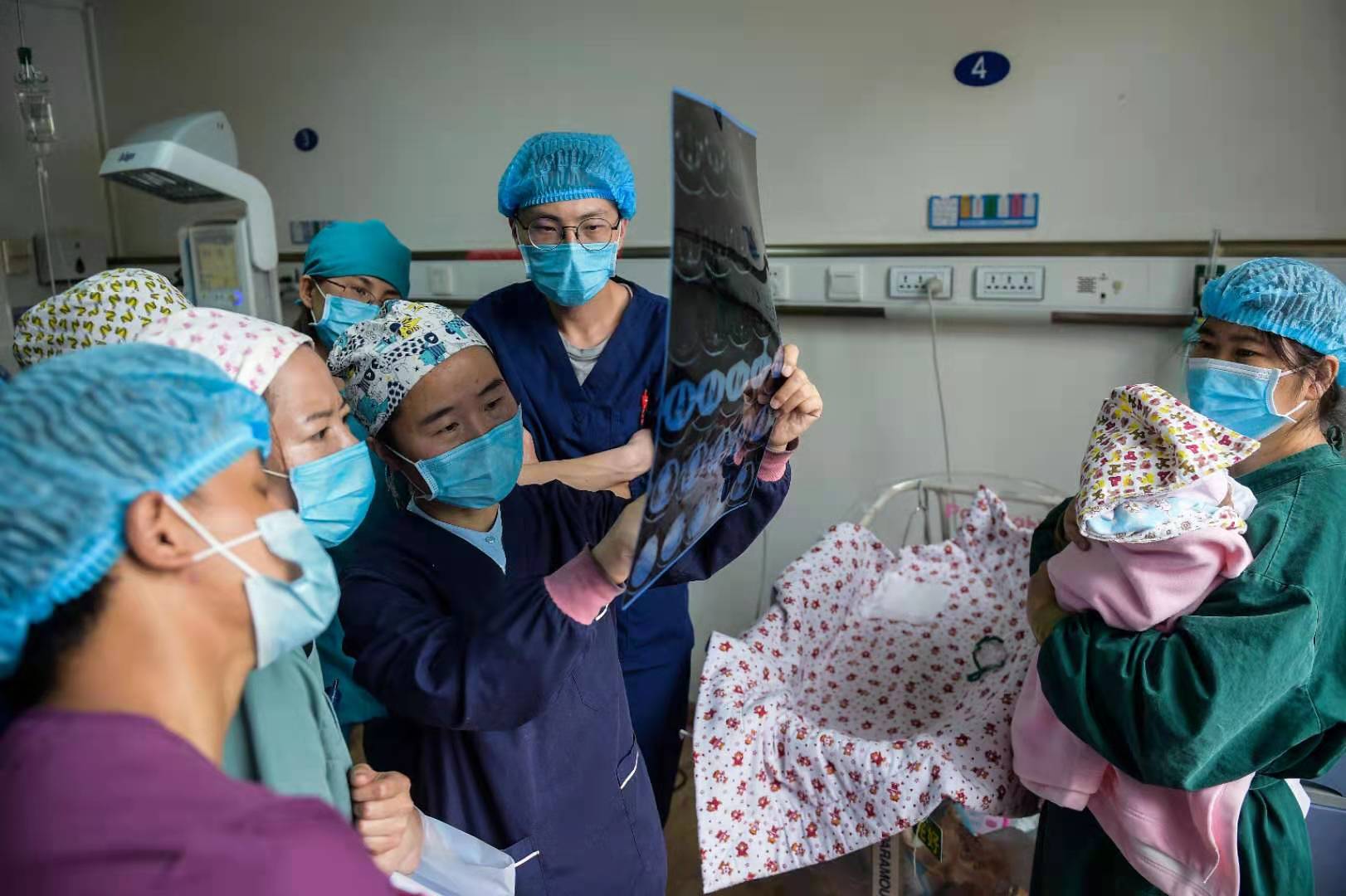 (左3為正在介紹患兒情況的韓同英醫(yī)生,點(diǎn)擊圖片收看視頻)