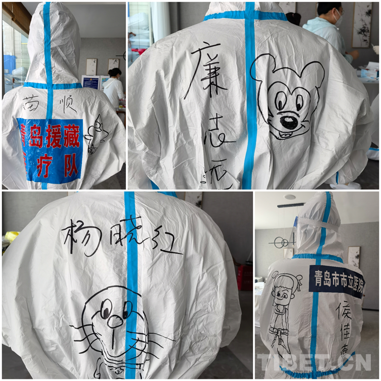 中國(guó)西藏網(wǎng)訊 青島援藏醫(yī)療隊(duì)自8月17日進(jìn)藏以來(lái), 隊(duì)員們無(wú)論工作多累多難、高原反應(yīng)有多難受,都沒(méi)有一句怨言,依然堅(jiān)持在西藏自治區(qū)日喀則市戰(zhàn)“疫”一線。工作之余,來(lái)自青島市市立醫(yī)院本部ICU的鐘翔宇發(fā)揮出了她的“隱藏技能”——在醫(yī)療隊(duì)的“大白”身上畫(huà)上漫畫(huà),用表情包背到身上的方式給隊(duì)友們加油鼓勁兒。身著漫畫(huà)“戰(zhàn)袍”的隊(duì)員們斗志昂揚(yáng),朝氣蓬勃,互相鼓勵(lì)幫助,完成了一天天的工作任務(wù)。而這些古靈精怪的漫畫(huà),在戰(zhàn)“疫”一線也成了一道靚麗的風(fēng)景線。(中國(guó)西藏網(wǎng) 記者/次旦拉姆 由桑珠孜區(qū)融媒體中心供稿)