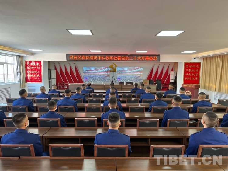 圖為林芝市森林消防支隊(duì)組織收聽收看黨的二十大開幕會(huì) 圖片由林芝市委宣傳部提供