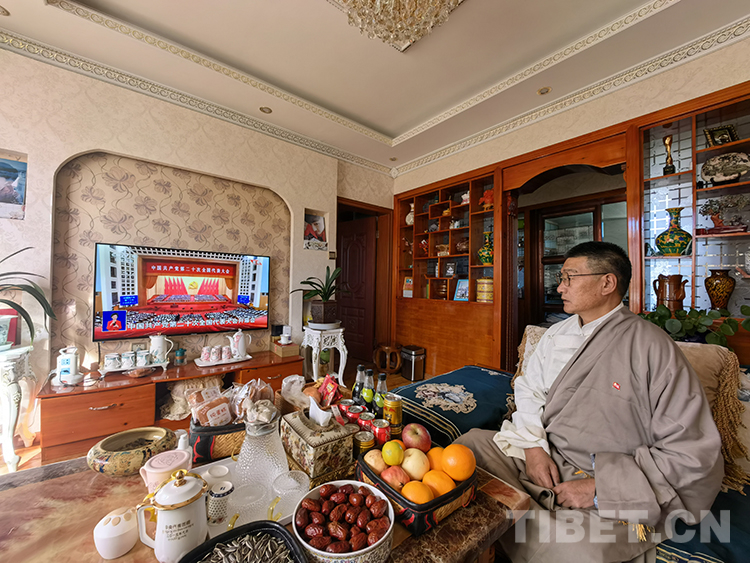 圖為扎西尼瑪在家中觀看黨的二十大開幕會(huì) 圖片由本人提供