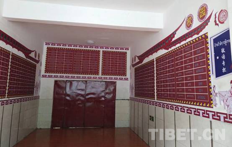 圖為西藏自治區(qū)那曲市比如縣羊秀鄉(xiāng)小學為了幫助孩子們隨時隨地學好藏語敬語,精心布置了敬語專欄 攝影:米瑪旺久
