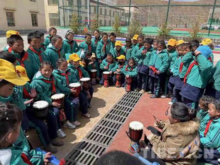圖為西藏自治區(qū)那曲市比如縣達塘鄉(xiāng)的孩子們學打鼓 攝影:嘎瑪卓瑪