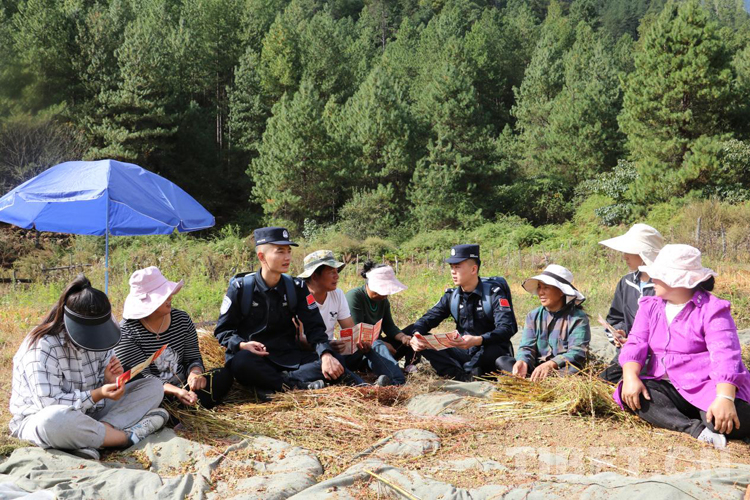 在田間地頭,趁著村民正坐在田坎上休息,“背包民警”向大家介紹:“習(xí)近平總書(shū)記在二十大報(bào)告中提出,增進(jìn)民生福祉,提高人民生活品質(zhì)……”“背包民警”邊宣講邊向村民們發(fā)放了自己印發(fā)的黨的二十大精神宣講手冊(cè),據(jù)了解,考慮到轄區(qū)群眾以中老年人為主,大多數(shù)認(rèn)識(shí)漢字不多,所以“二十大精神宣講手冊(cè)”采取圖文并茂的方式,用最通俗易懂的話向群眾解釋二十大報(bào)告的內(nèi)容。