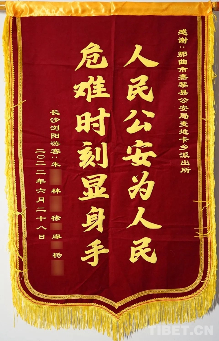 近日,那曲市公安局收到了一份特別的禮物,這是一面印著“人民公安為人民、危難時刻顯身手”的錦旗和一封飽含深情的感謝信。這份特別的禮物是湖南市民朱先生、徐先生寄到西藏的,以此表達對那曲市公安局、那曲市嘉黎縣公安局麥地卡鄉(xiāng)派出所民警的感激之情。