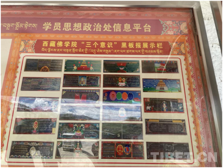圖為西藏佛學院“三個意識”黑板報展示欄