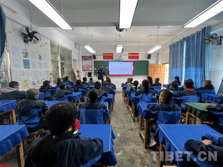 圖為察瓦龍邊境派出所民警向轄區(qū)學生宣講法律知識