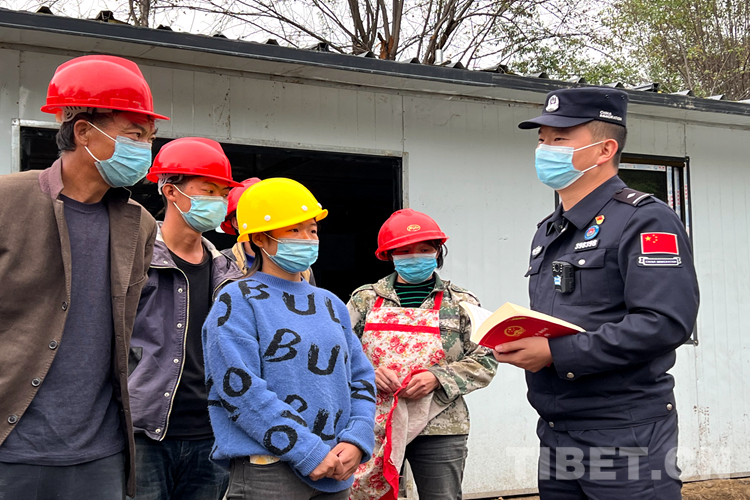 圖為派邊境派出所民警在工地向務工人員開展普法宣傳