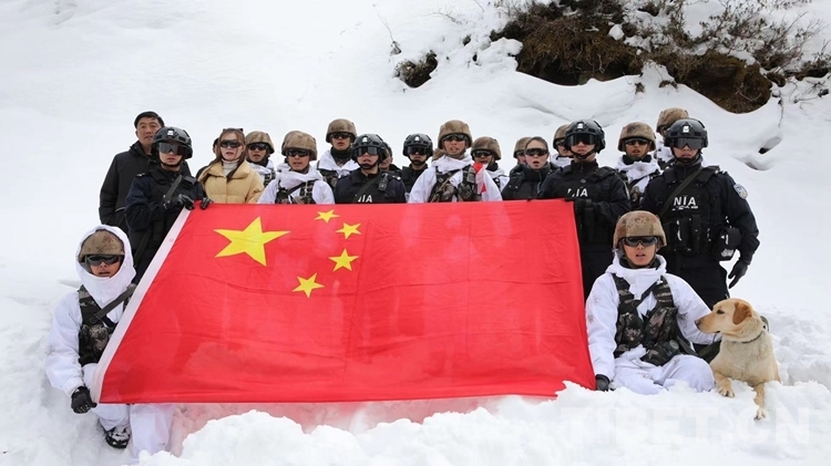 圖為林芝邊境管理支隊南伊邊境派出所與駐地軍警開展聯(lián)合巡邏 攝影:馬智慧