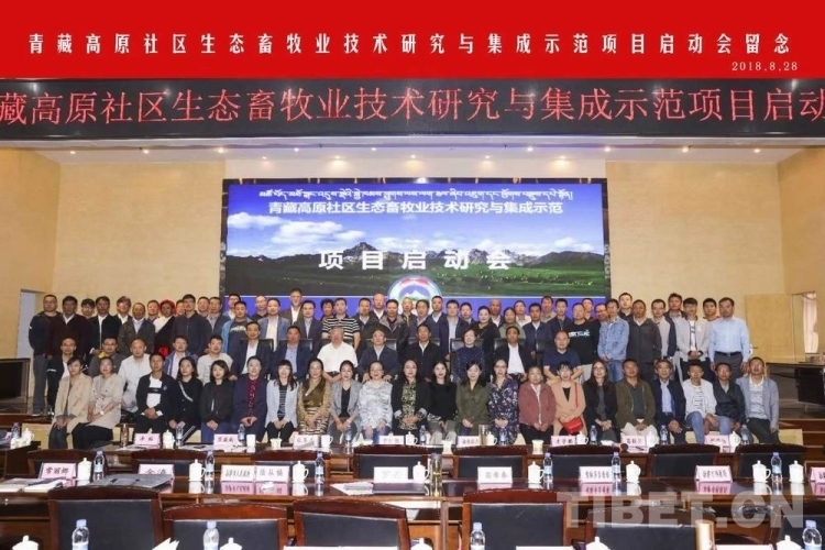 圖為2018年8月“青藏高原社區(qū)生態(tài)畜牧業(yè)技術(shù)研究與集成示范”項(xiàng)目啟動會的會議合影。該項(xiàng)目是西藏科研團(tuán)隊(duì)承擔(dān)的科技部重點(diǎn)研發(fā)項(xiàng)目