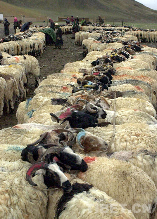 這是藏北雙湖特別區(qū)(現(xiàn)雙湖縣)嘎措鄉(xiāng)牧人用繩子統(tǒng)一拴住羊群角后,準(zhǔn)備擠羊奶。該鄉(xiāng)是西藏唯一的一個走集體化經(jīng)營道路的鄉(xiāng)村(唐召明2001年攝)