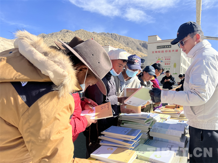 在送“書籍” 現(xiàn)場(chǎng),《西藏文學(xué)》《西藏文藝》《邦錦梅朵》三個(gè)編輯部工作人員為現(xiàn)場(chǎng)群眾和當(dāng)?shù)?span style="text-align: center; background-color: rgb(253,242,234)">干部贈(zèng)送書籍,當(dāng)?shù)厝罕姾蛯W(xué)生們紛紛前來(lái)翻看尋找自己喜歡的書籍,大家人手幾本書?!拔移綍r(shí)喜歡閱讀藏文文學(xué)作品,這次要了兩本文學(xué)相關(guān)書籍拿回家閱讀”17歲的益西巴珍說(shuō)。據(jù)了解,此次活動(dòng)西藏文聯(lián)向熱愛閱讀的群眾和學(xué)生共贈(zèng)送1500本(冊(cè))文藝書籍和期刊。