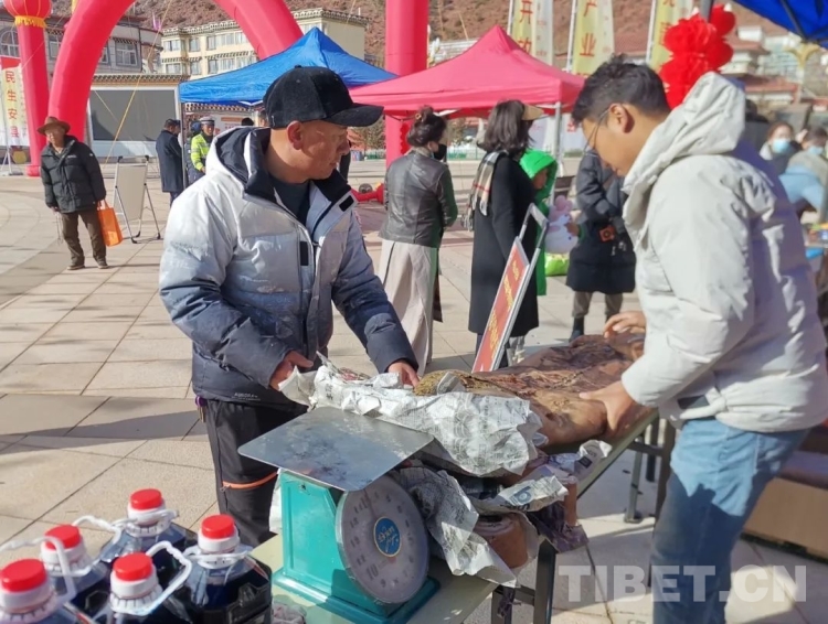 今年的年貨節(jié)除了大家熟悉的高原蜂蜜、索多西辣椒醬、鹽井葡萄酒,藏香豬肉也成了群眾們最青睞的年貨。來(lái)自徐中鄉(xiāng)的群眾澤仁曲措說:“今年的年貨節(jié)物品豐富,花樣繁多,我們一家人都來(lái)買年貨,心里特別高興?!?/p>