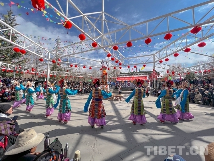 中國西藏網訊 近日,雪域高原西藏沉浸在濃濃的節(jié)日氛圍中,拉薩市宗角祿康公園內《曲杰諾桑》《朗薩雯蚌》等傳統(tǒng)藏戲劇目輪番上演好戲連連。