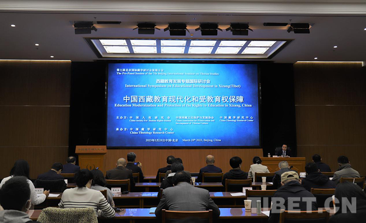 中國西藏網(wǎng)訊 3月28日,第七屆北京國際藏學(xué)研討會前期分會—西藏教育發(fā)展專題國際研討會在北京舉行。會議以“中國西藏教育現(xiàn)代化和受教育權(quán)保障”為主題,由中國人權(quán)研究會、中國西藏文化保護(hù)與發(fā)展協(xié)會、中國藏學(xué)研究中心共同主辦,中國藏學(xué)研究中心承辦。研討會由中國藏學(xué)研究中心總干事鄭堆主持,國內(nèi)外有關(guān)專家學(xué)者60余人以線上線下相結(jié)合的方式參會。中國人權(quán)研究會副秘書長王琰文,中國西藏文化保護(hù)與發(fā)展協(xié)會副秘書長林建,中國藏學(xué)研究中心副總干事廉湘民、李德成出席。
