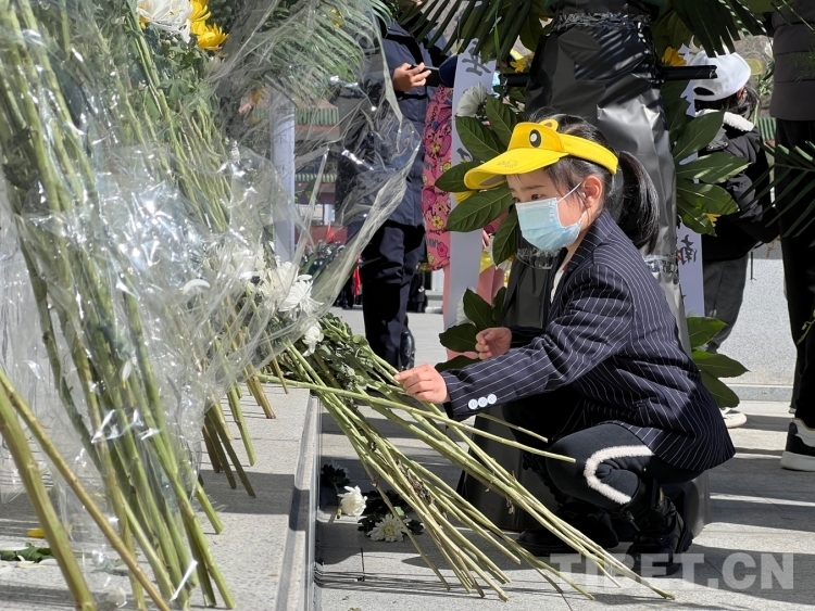 圖為社會(huì)各界人士向革命先烈敬獻(xiàn)鮮花 攝影:德吉卓瑪