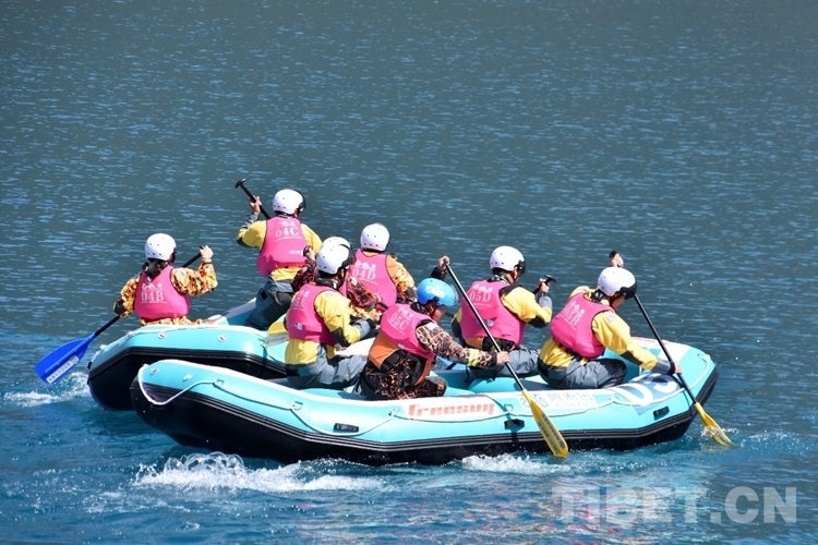 圖為4月15日,200米靜水漂流筏排位賽比賽現(xiàn)場 攝影:次旦拉姆