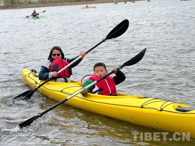 圖為家長帶孩子體驗皮劃艇 攝影:德吉卓瑪