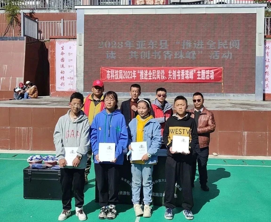 圖為日喀則市科學(xué)技術(shù)協(xié)會以科普大篷車進校園活動為契機,聯(lián)合亞東縣委宣傳部、縣科技局在縣中學(xué)舉辦的“推進全民閱讀 共創(chuàng)書香珠峰”主題宣傳活動現(xiàn)場