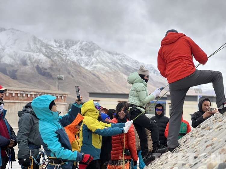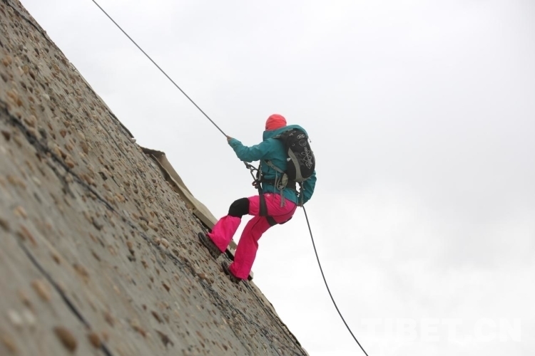 圖為登山隊專業(yè)教練對山友們進行指導(dǎo) 攝影:德吉卓瑪